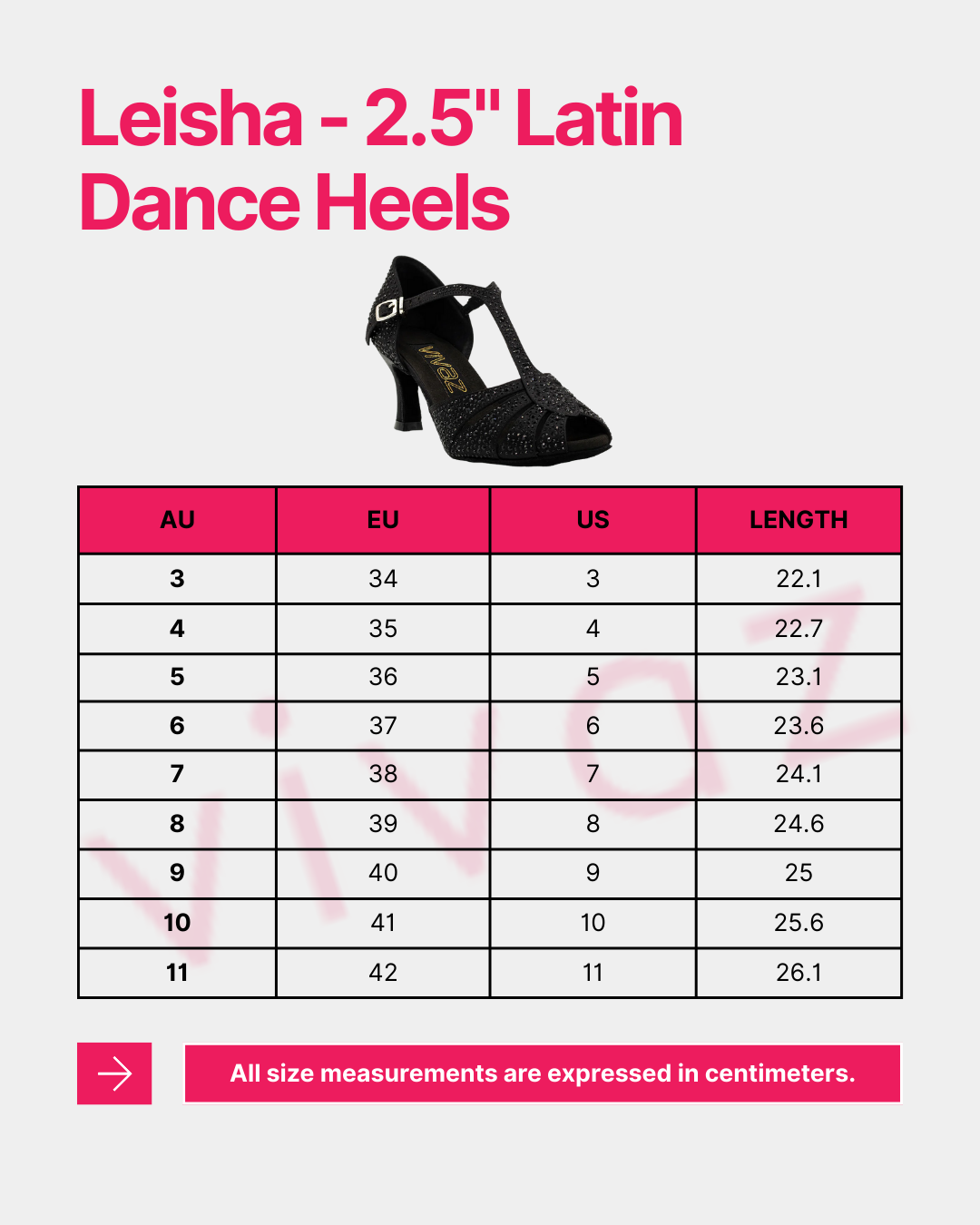 For personalized sizing assistance, contact one of our trained fit specialists via email at support@vivazdance.com.au.