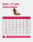 Paris is made in EU sizing and is true to size, designed for a firm, snug fit—just as dance shoes should be. If you prefer a tighter fit, consider ordering your usual size or one size down.